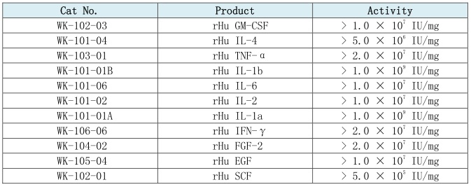 Custom made cytokines. Weike specialized provide quality Product for our customer who engaged in clinical research of cell therapy, such as cytokines of DC cell, NK cell, lymphocyte cell and hepatocytes culture.