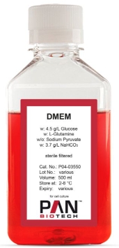 DMEM是是Eagle-培養基的改良型。廣泛應用于支持哺乳動(dòng)物細胞培養的廣譜培養基。相比于BME中增加了4倍的氨基酸和維生素含量。來(lái)源:用來(lái)培養未轉化過(guò)的老鼠和雞的細胞培養。有高糖(4.5g/l)、低糖(1g/l)和無(wú)糖等類(lèi)型。